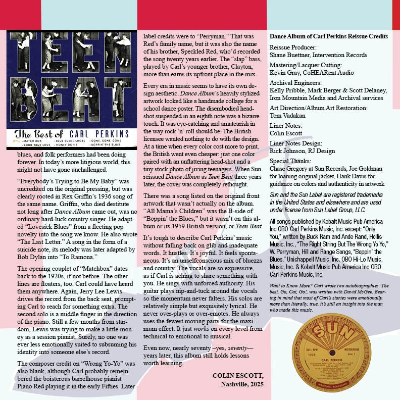 Intervention Records is proud to announce the first vinyl release in its Intervention Sun Records Hi-Fi Series, Carl Perkins' groundbreaking rockabilly classic, 1957's "Dance Album of Carl Perkins."