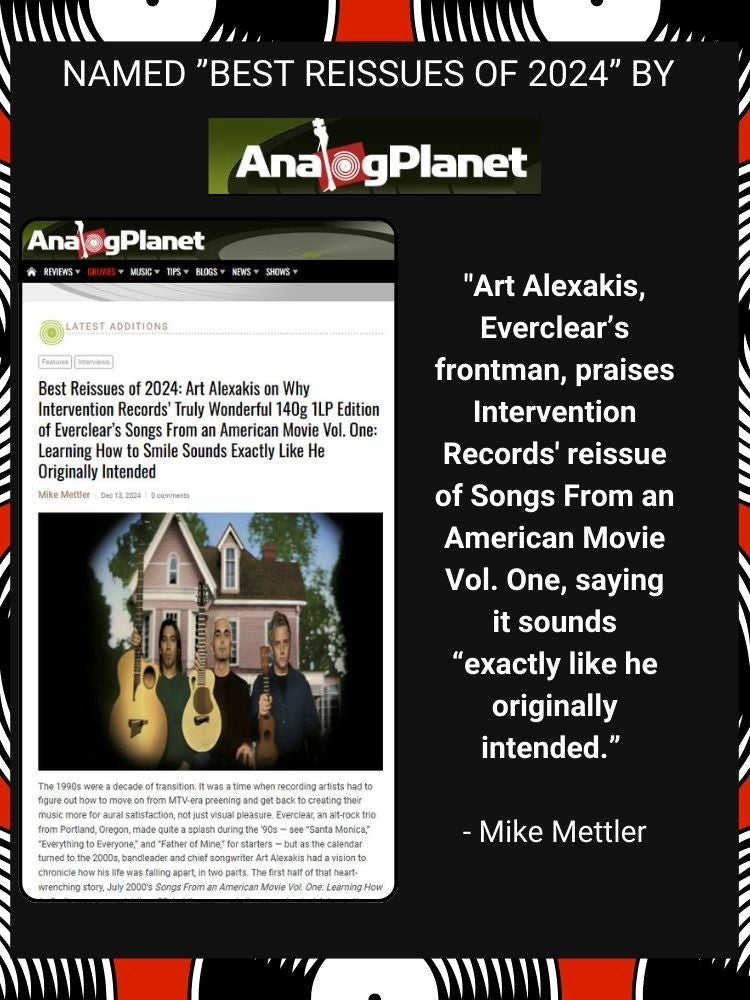Art Alexakis, frontman of Everclear, celebrates Intervention Records’ reissue of Songs From an American Movie Vol. One: Learning How to Smile, calling it a release that "sounds exactly like [he] originally intended." This 140g vinyl edition, mastered from the original analog tapes, brings new life to the 2000 album once withheld by Capitol Records. With meticulous attention to sound quality and Alexakis' full endorsement, this reissue captures the essence of the band’s vision. Discover the story behind the album’s journey to vinyl and the artistry of this standout reissue. Read more on Analog Planet.