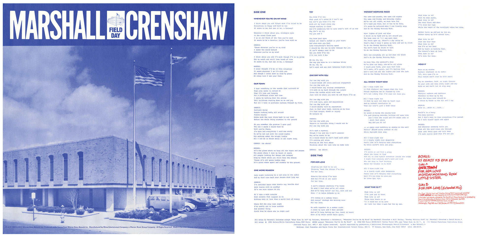 Marshall Crenshaw "Field Day" Expanded Edition 180G LP (OUT OF PRINT)